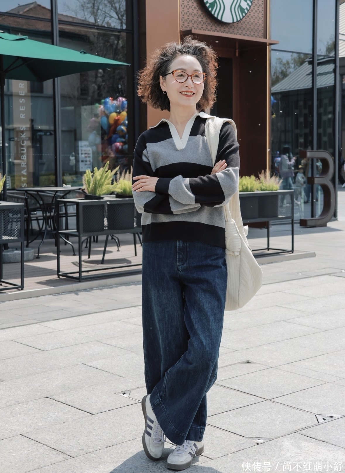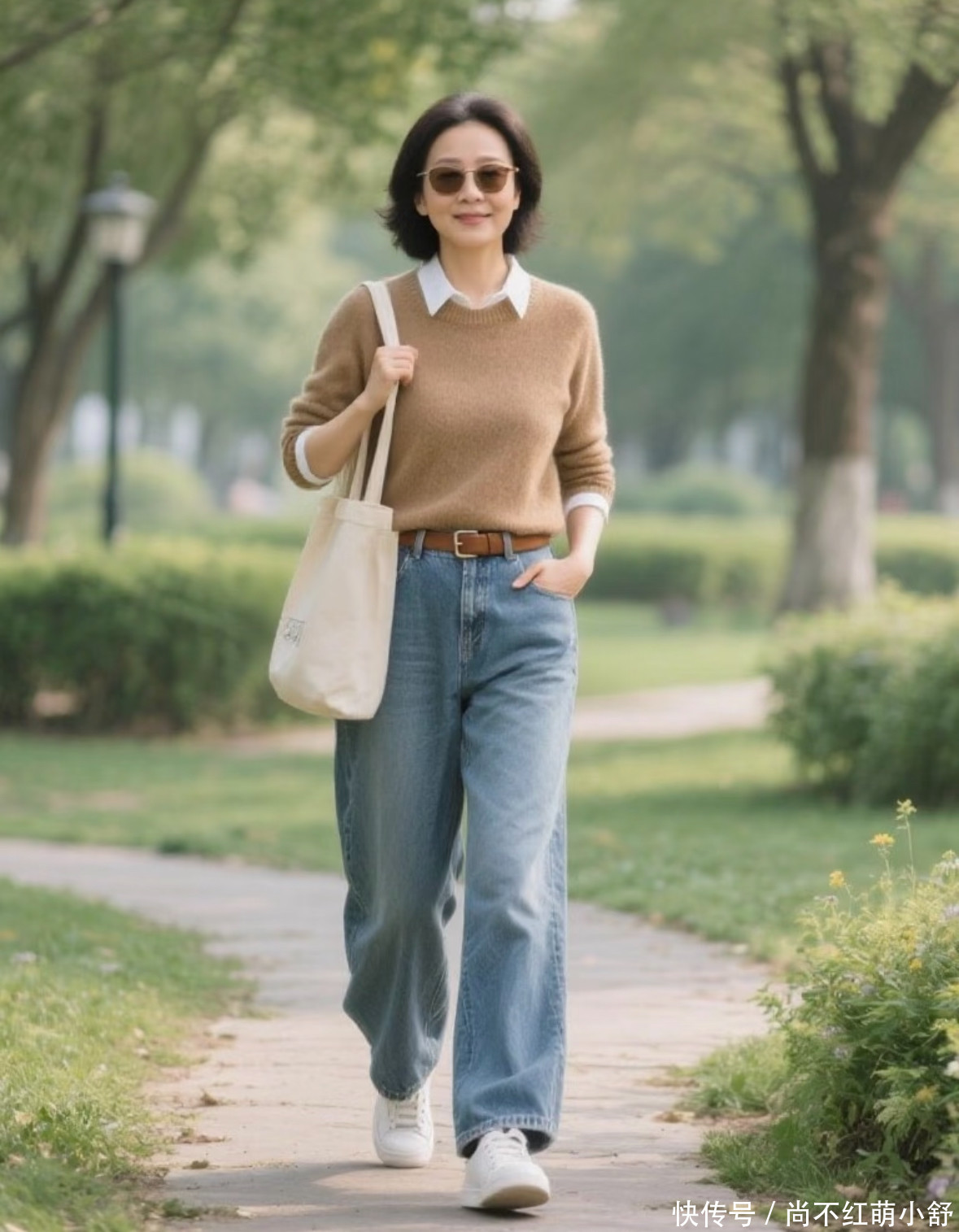 穿搭示范:一条浅咖色真挚裤,搭配真挚开衫,内搭一件白色的T恤,跋扈带领从简的项链在颈间。不论是搭配融会鞋照旧乐福鞋,那种“我绝不冗忙就很好意思瞻念”的嗅觉,恰是中年女东说念主最迷东说念主的景色。